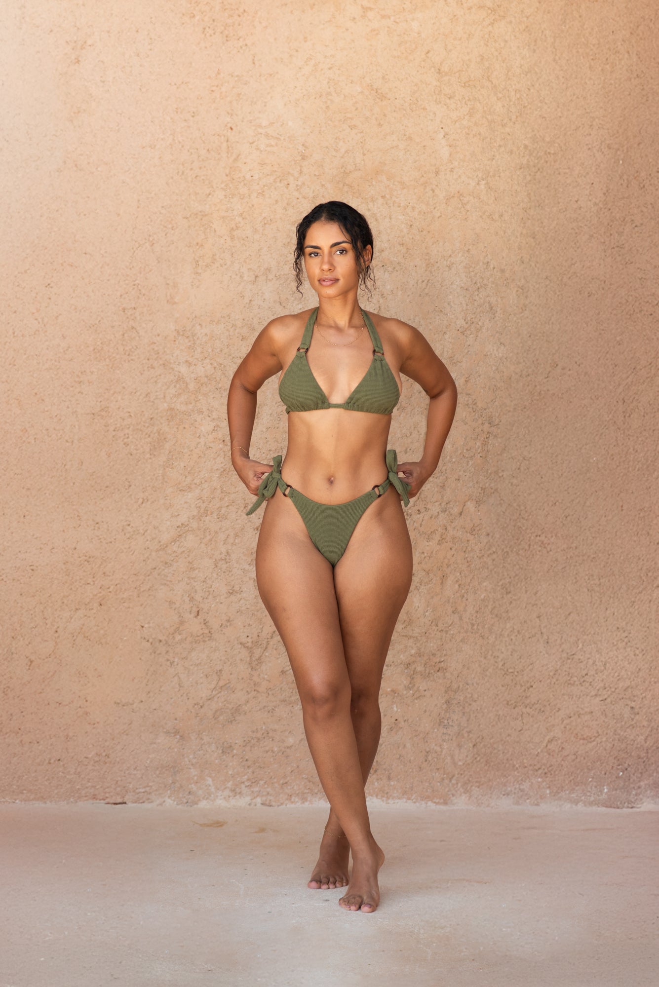 Want to feel sexy? This bottom is made for you! Its low-rise cut is perfect for revealing just the right amount of skin. Adorned with four rings, signature of our NOMAD collection, this style features adjustable tie cords on the sides for a perfect fit. It can be worn low on the hips or pulled up for a high-leg look.